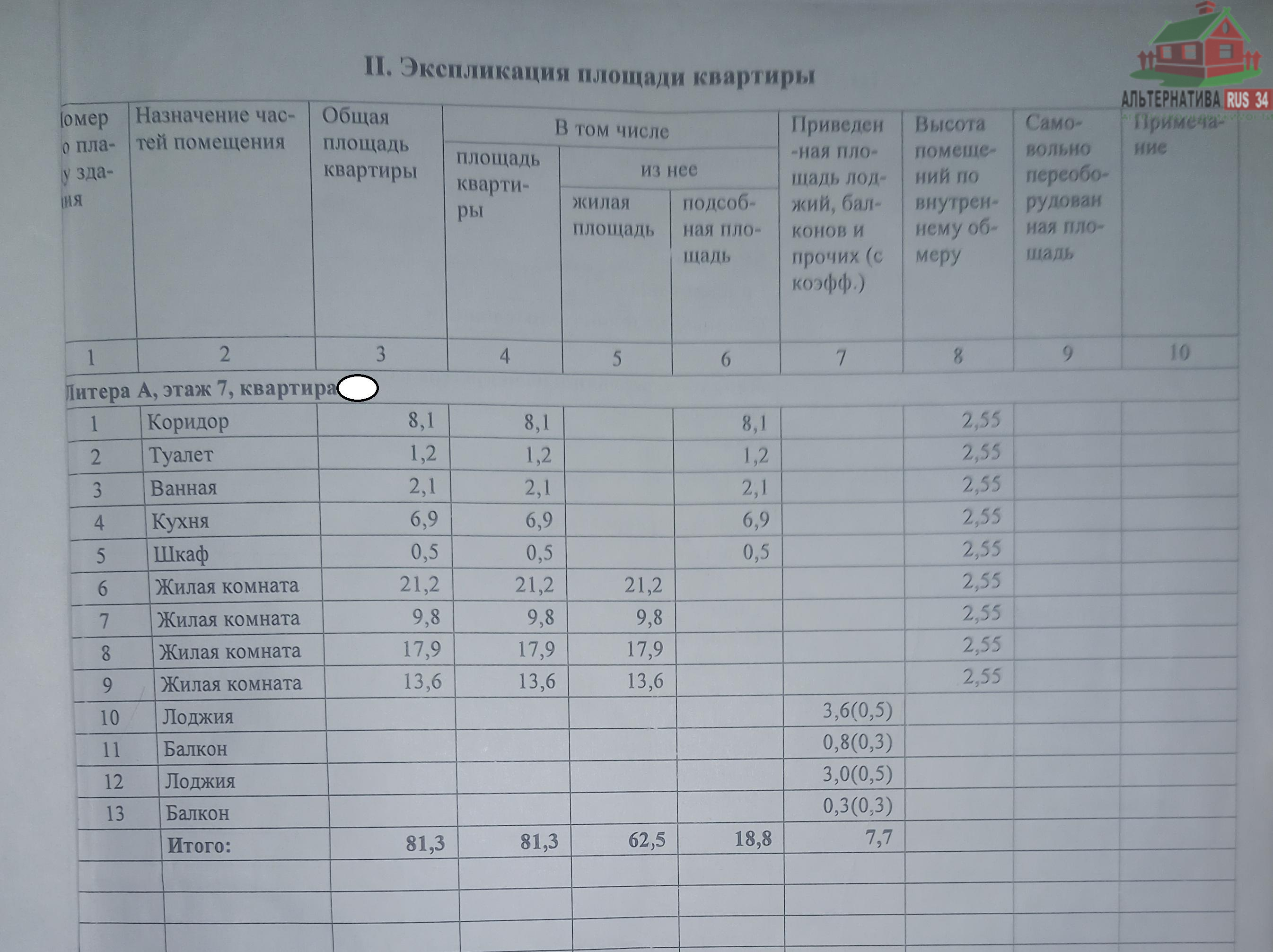 | Площадь, кв.м. | 81.3 |