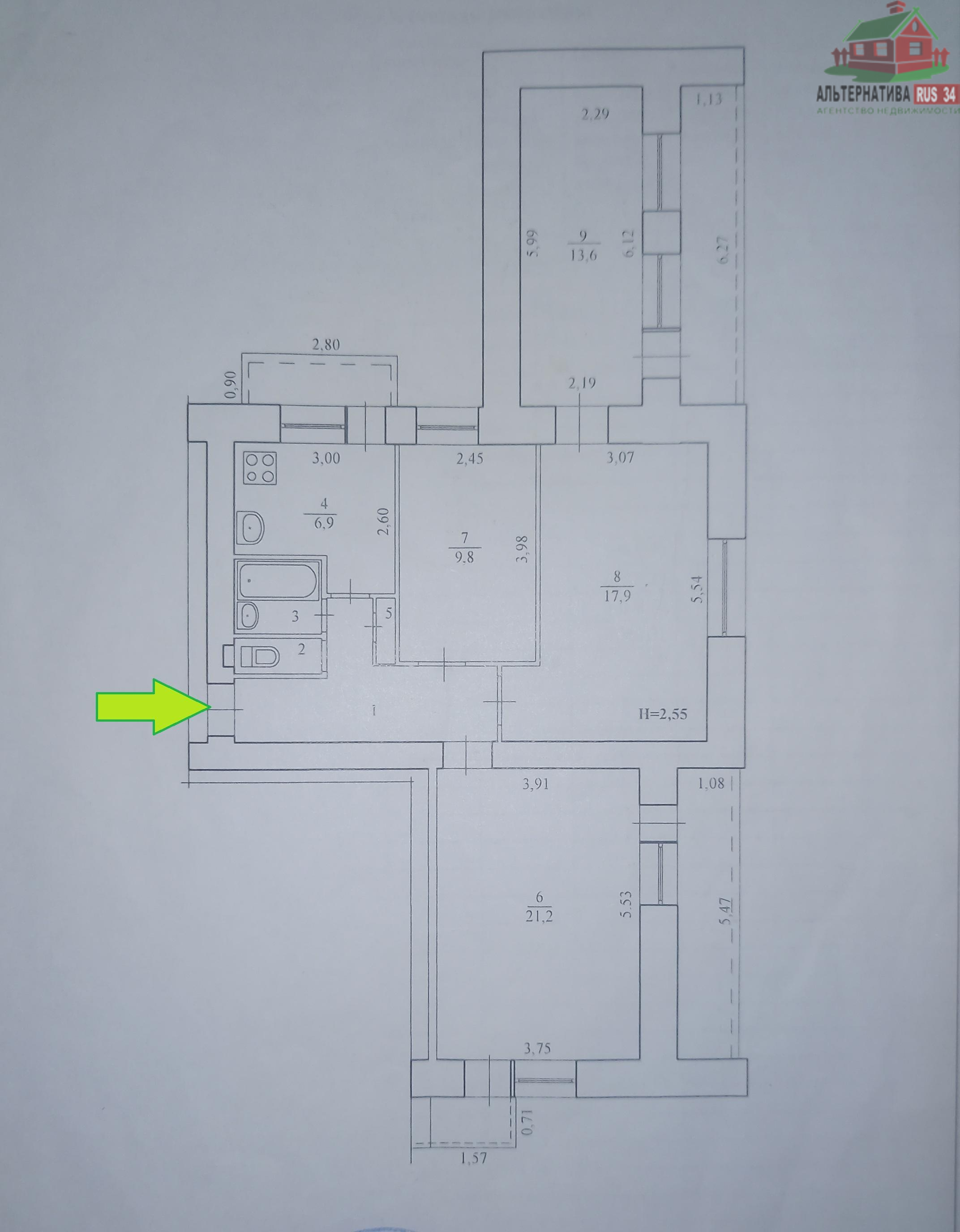 | Площадь кухни, кв.м. | 6.9 |