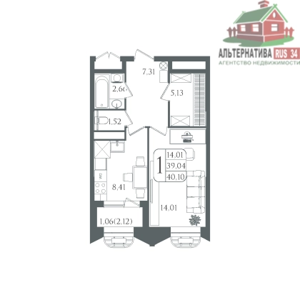 | Площадь, кв.м. | 40.1 |